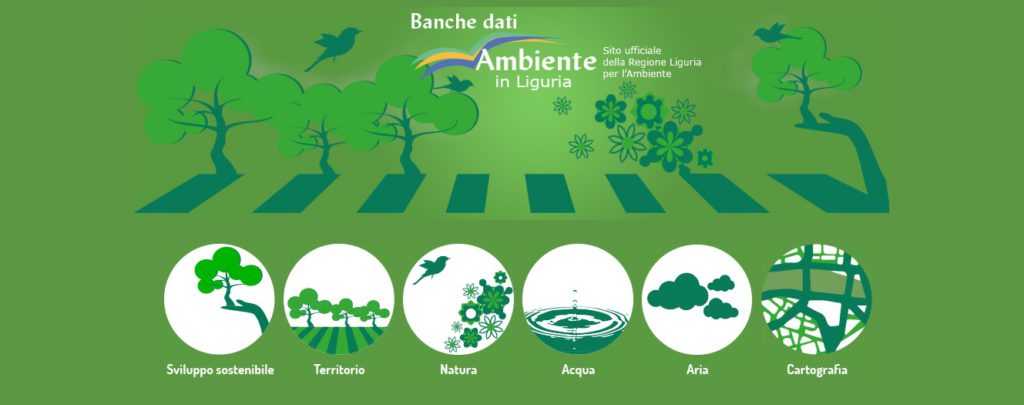 Sul sito regionale www.banchedati.ambienteinliguria.it le informazioni disponibili sono classificate secondo 5 canali tematici (sviluppo sostenibile, territorio, natura, acqua, aria), con l’aggiunta della sezione cartografica.