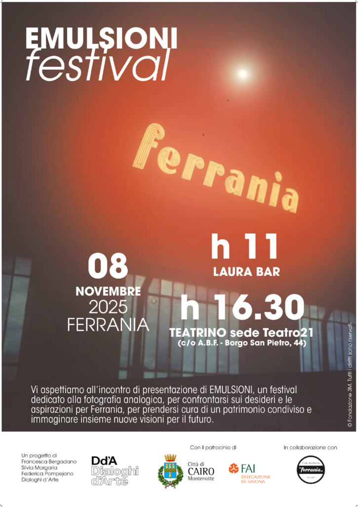 “EMULSIONI Festival” invita sabato 8 novembre la cittadinanza, le associazioni e le realtà del territorio a una giornata di ascolto e co-progettazione dedicata a Ferrania e alla sua eredità post-industriale.
