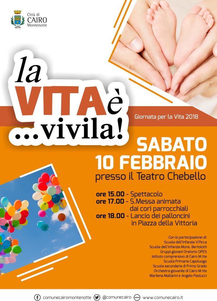 “La vita è …vivila!” è il titolo dell’iniziativa organizzata dal’Amministrazione comunale in occasione della 40ª Giornata Nazionale per la Vita, con la partecipazione delle Scuole dell’Infanzia V. Picca e Mons. Bertolotti, i giovani delle OPES, l’Istituto Comprensivo di Cairo, la Scuola Primaria Capoluogo, la Secondaria di primo Grado, l’Orchestra giovanile di Cairo, Marilena Mallarini e Angelo Paolucci.