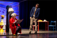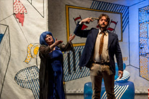 I testi di Franca Rame e Dario Fo hanno la capacità di farci ridere affrontando temi impegnati e spesso drammatici. In “Coppia aperta, quasi spalancata” questa capacità è resa dalla vera e propria trasformazione di ruolo cui è sottoposto il pubblico: dapprima spettatore di una serie di scenette da sitcom, costantemente in bilico tra finzione e realtà, quindi spettatore di una commedia che scivola nel drammatico e, infine, protagonista del dramma stesso. Perché nei personaggi di questa vicenda sono rappresentati gli eterni problemi di ogni coppia, che tenta di reinventare un modo di stare insieme per rimediare alla fine della passione. Quando un regista decide di portare sulla scena questo spettacolo deve innanzitutto decidere in che modo bilanciare gli effetti comici con la serietà dei temi cui si allude (non soltanto il tradimento e il senso di abbandono, ma la depressione, le relazioni di un uomo maturo con minorenni, l’anoressia, la violenza sulle donne): in questa rappresentazione si è voluto rendere soprattutto l’aspetto comico, ispirandosi alla coppia Vianello-Mondaini degli inizi, che per prima portò in Italia lo humor nero. Anche la scenografia e i costumi, ispirati alla Pop Art, concorrono a creare un’atmosfera allegra e giocosa, che, coi suoi colori sgargianti, esaspera il contrasto tra finzione e realtà, lasciando alla rappresentazione di dimostrare quanto i confini tra questa