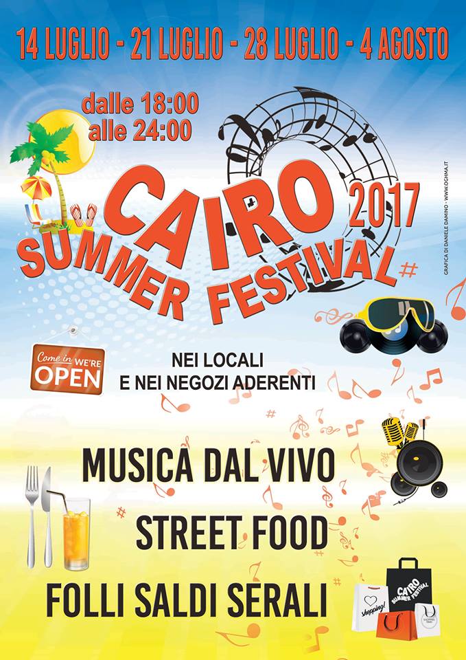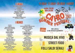 Dopo il successo riscosso lo scorso anno, viene riproposto, dai commerciati del Centro Storico di Cairo Montenotte, il “Cairo Summer Festival” in un’edizione ancora più ricca.